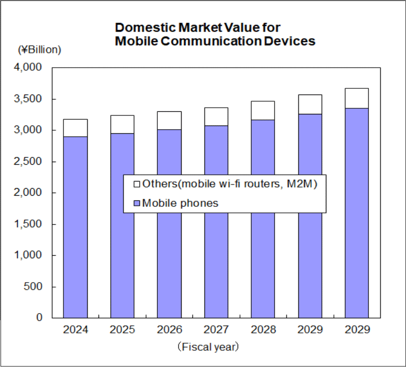 - Domestic demand for mobile communication terminals is projected to grow gradually. This expansion is driven by the appeal of AI features, the realization of massive simultaneous connections and low latency via 5G Stand Alone (SA) mode, and the gradual emergence of services unique to 5G. This includes demand for 5G terminals (and any new terminals supporting 5G services as they appear).