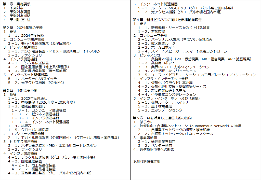 > > > > トピックス2025 > 【書籍・デジタル版販売開始のお知らせ】通信機器中期需要予測(2025-2030年度)